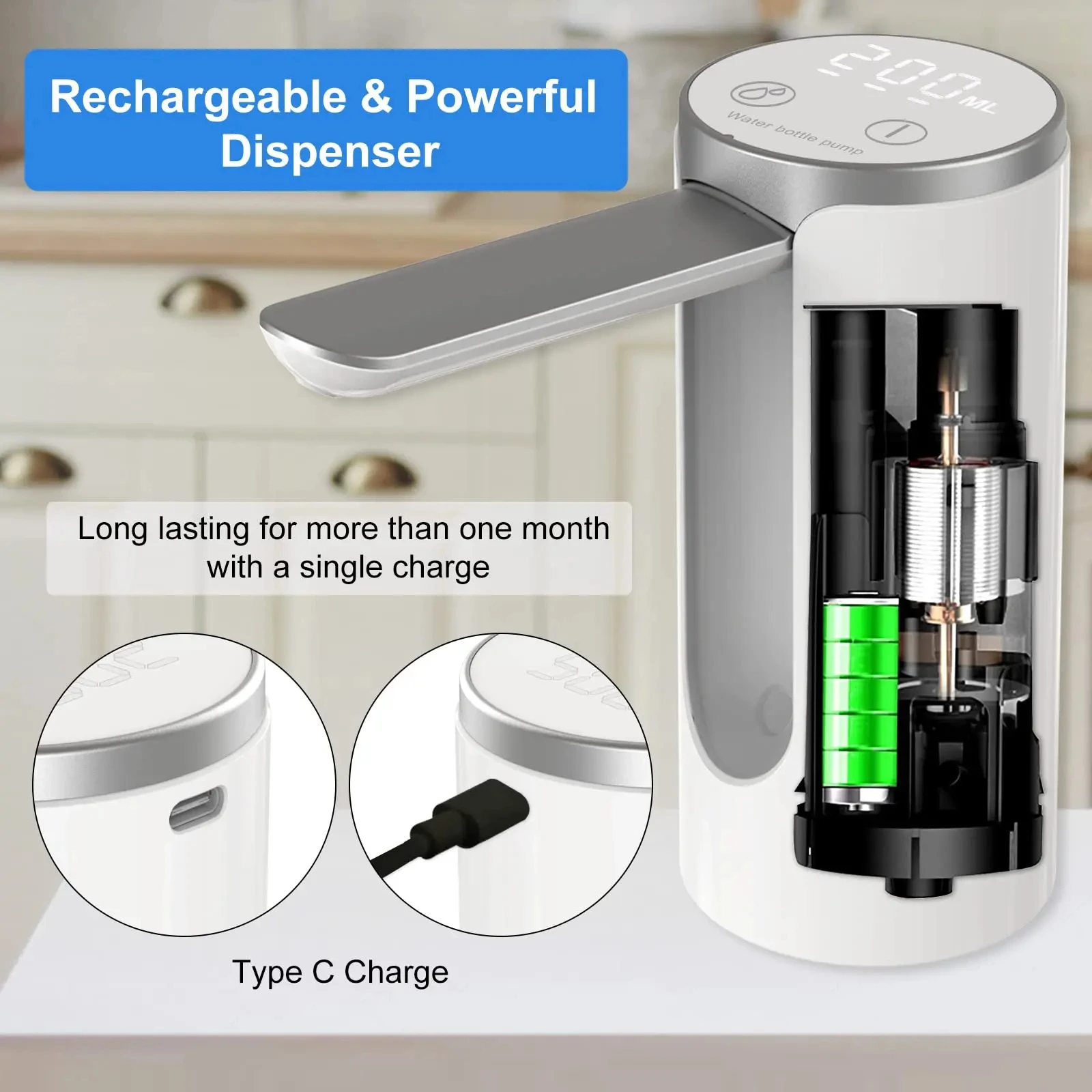 LED Display Electric Water Bottle Pump – Portable Foldable USB Rechargeable Dispenser (1200 mAh)