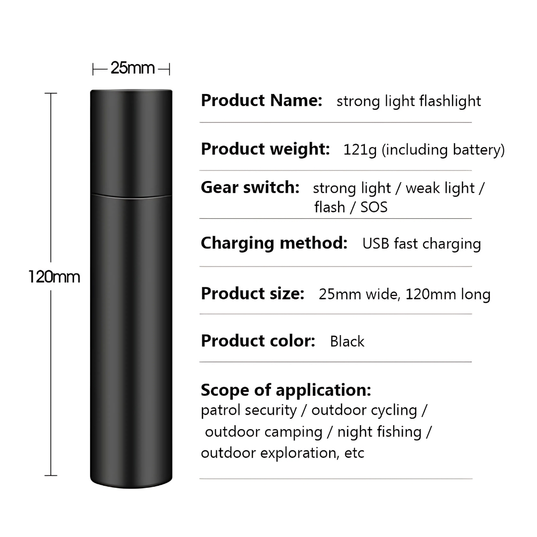 Crafted from durable aluminum alloy, this lightweight and pocket-sized flashlight is built for convenience and portability. Whether you need a reliable flashlight for outdoor use or an emergency backup at home, this powerful and versatile torch is a must-have!
