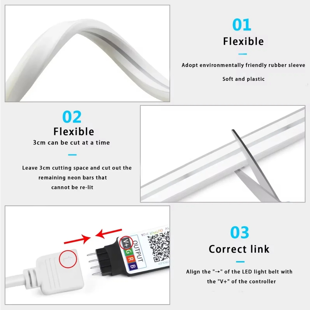 RGB Neon LED Strip Light 1M-5M | IP65 Waterproof, USB Powered, Smart App Control | Music Sync, Voice Control, Flexible Rope for Home Decor
