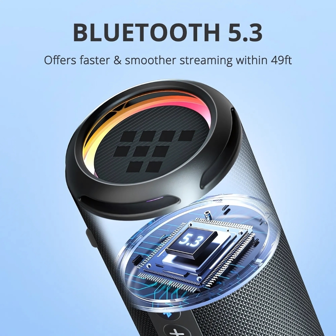 With an IPX7 waterproof rating, the T7 Lite wireless speaker is pool-proof and adventure-ready, making it perfect for camping, beach trips, and outdoor gatherings. Enjoy seamless streaming with Bluetooth 5.3 and faster, smoother connectivity up to 49ft (15m). Pair two speakers together for an amplified stereo experience and customize your sound & light show via the Tronsmart App.